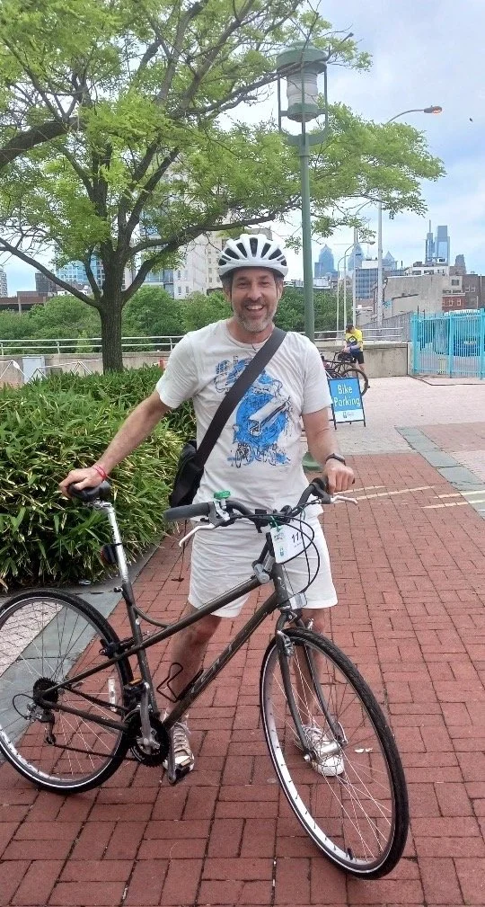 Ten minutes later, I crested a ramp to the top of the park, rolling in to welcome applause from a small group of volunteers. I felt delightfully spent. My Philadelphia friend Eleni was there to greet me (her husband Rob was at home with COVID), bearing a delicious pastry. It was 1 pm on a magnificent spring day, and I’d just proven to myself that, vis-a-vis distance biking, I can almost consider myself fully recovered. Triumph.