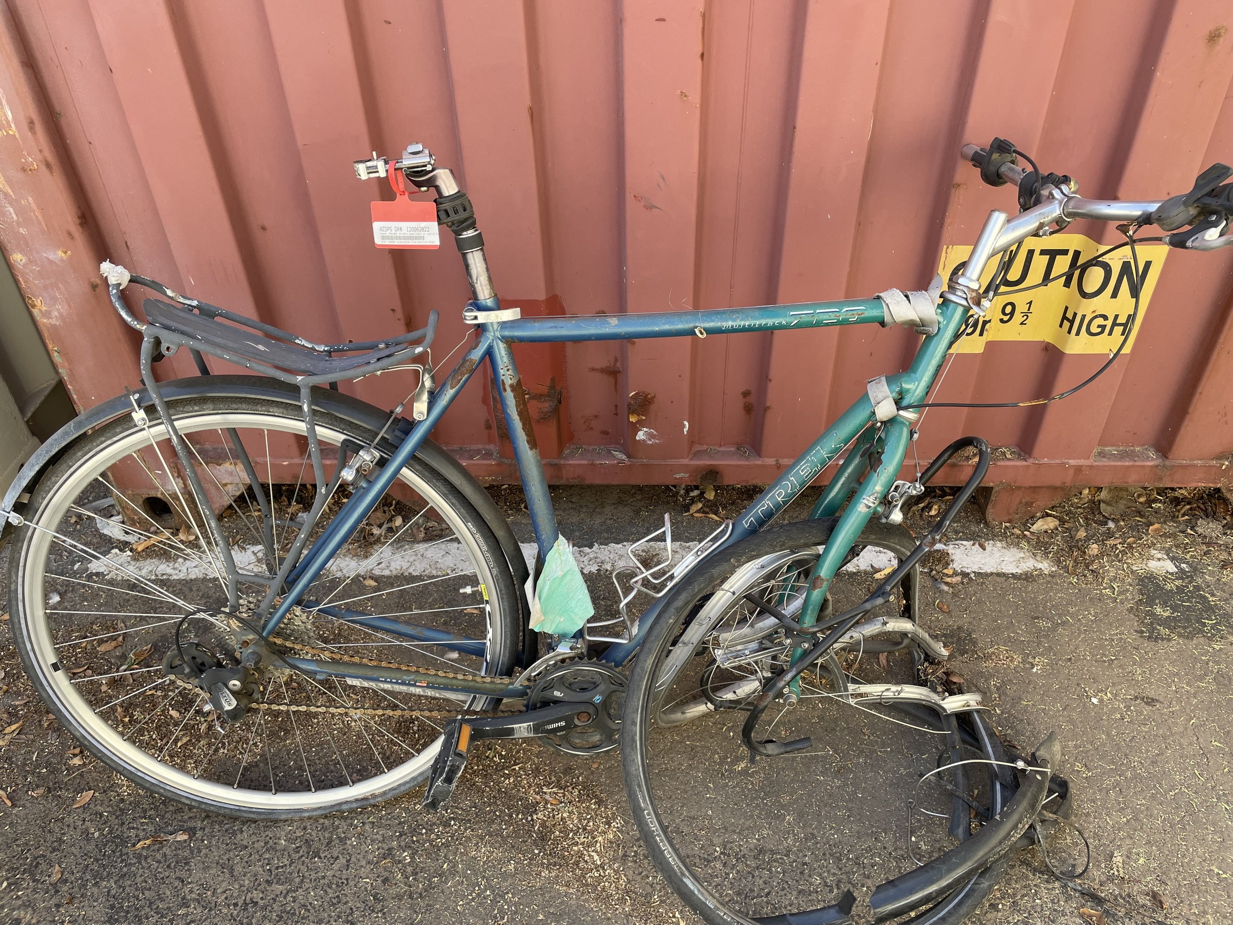 My wrecked bike, photo courtesy of the Maricopa County Sheriff’s Office Property and Evidence Facility